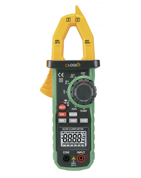 - Medición de tensión AC/DC, corriente AC/DC, resistencia, capacidad, frecuencia y temperatura